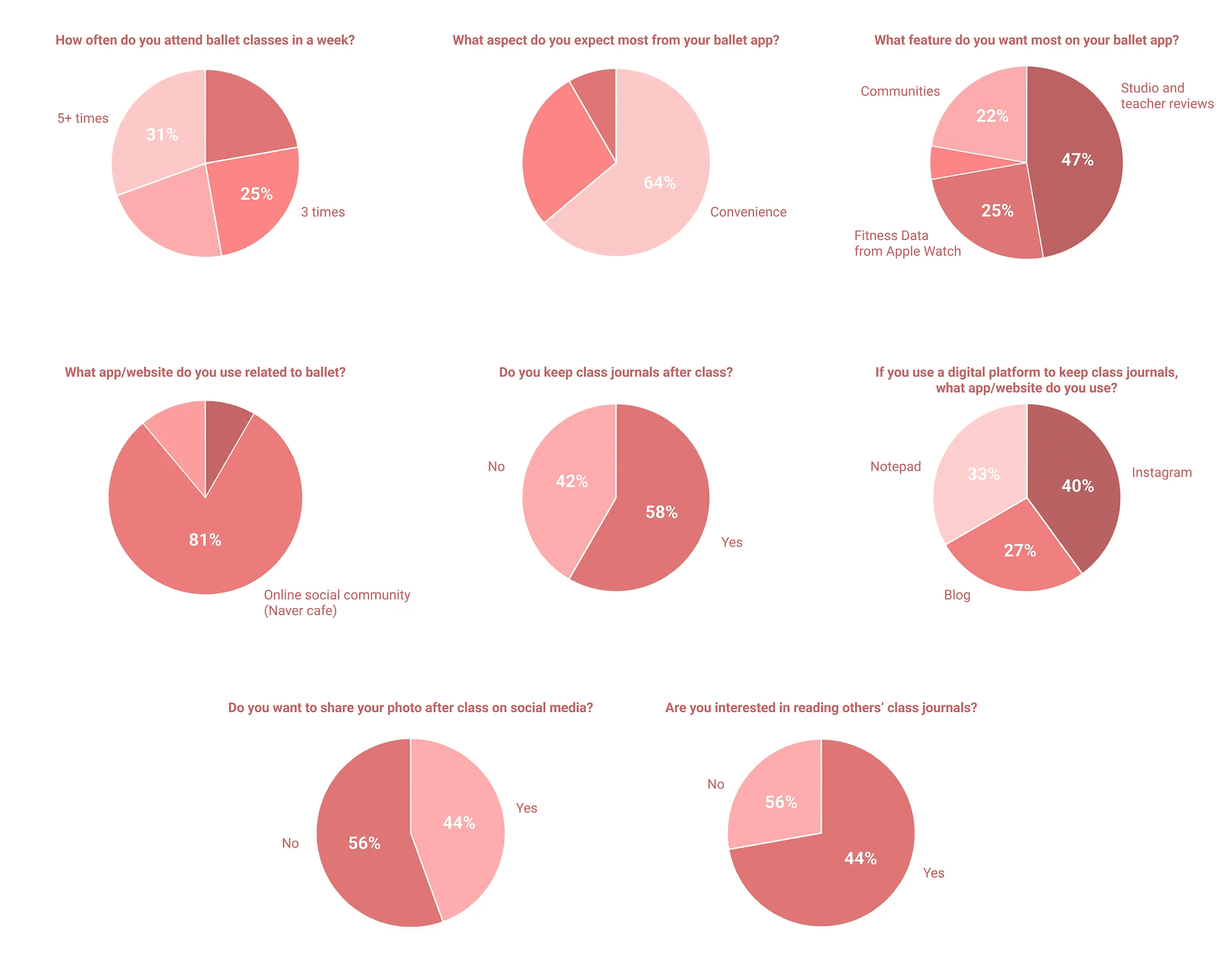 I first sent out a survey to collect people’s ballet behaviors and preferences. I received 36 responses from adult ballet learners in Adult ballet learner Reddit. This helped target some problems to narrow down the topic.