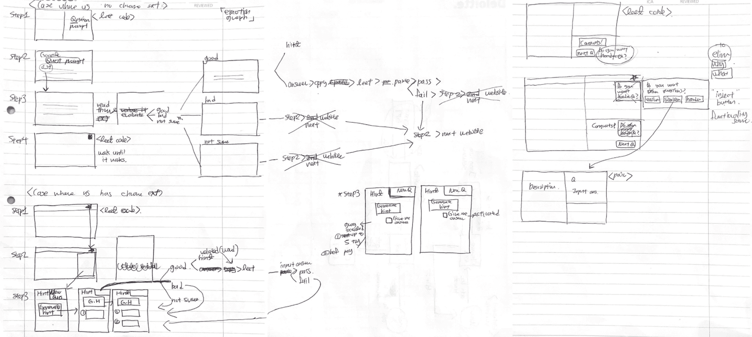 First, I broke down every step that users will walk through and tried to think about the process considering what users will expect in each step. Since the hackathon had to be completed in two weeks, I created a low-fidelity wireframe as early as possible and handed it over to a front-end developer.
