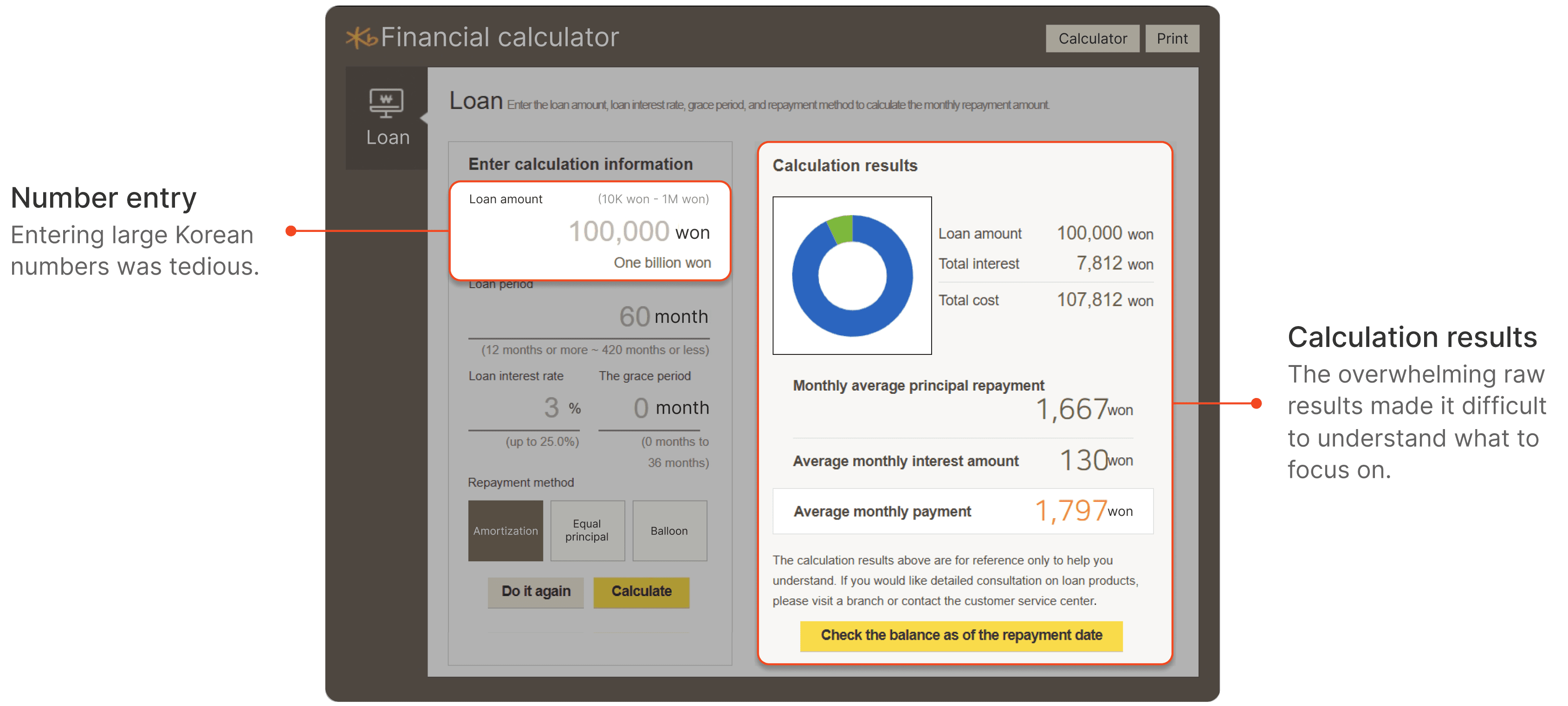 User feedback revealed that friction existed at both ends: (1) number entry and (2) calculation results. Understanding these dual pain points shaped the final design strategy and emphasized the value of holistic user research.
