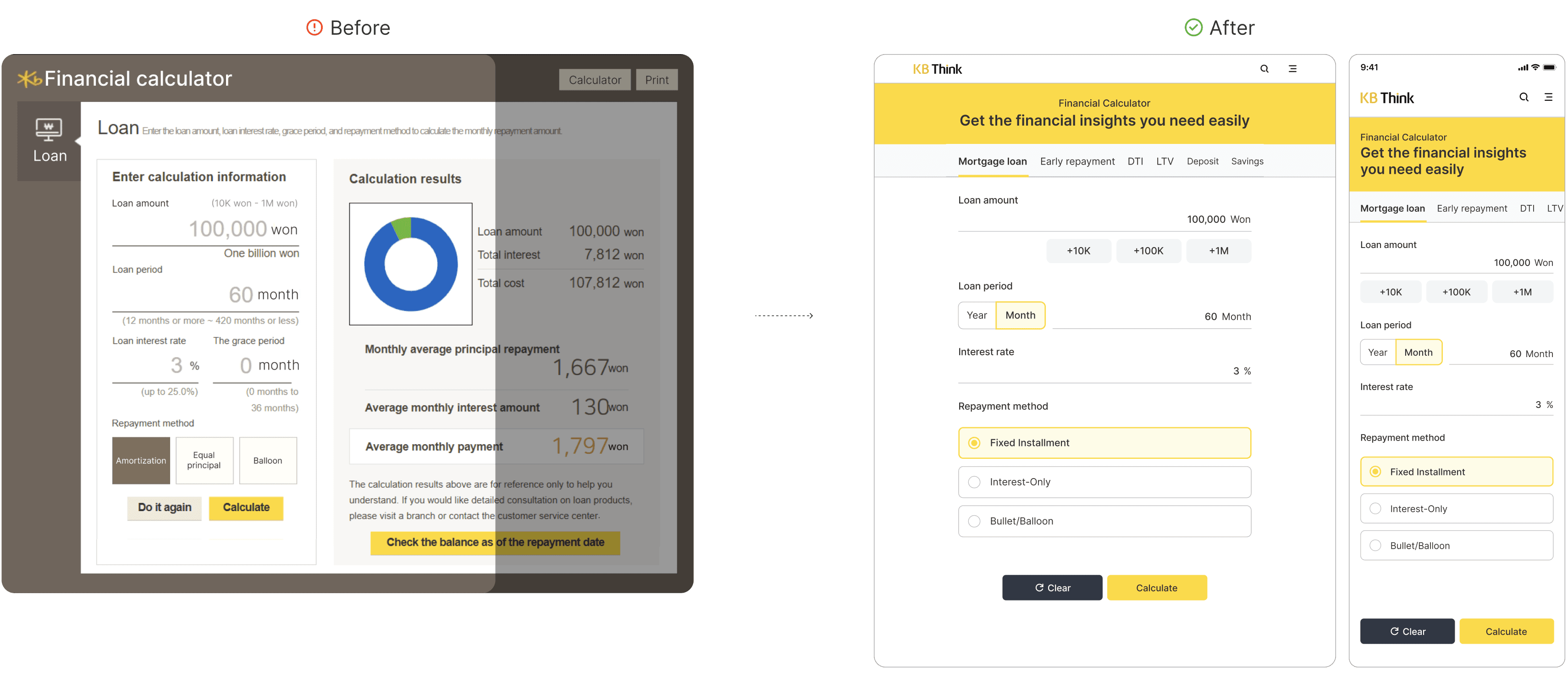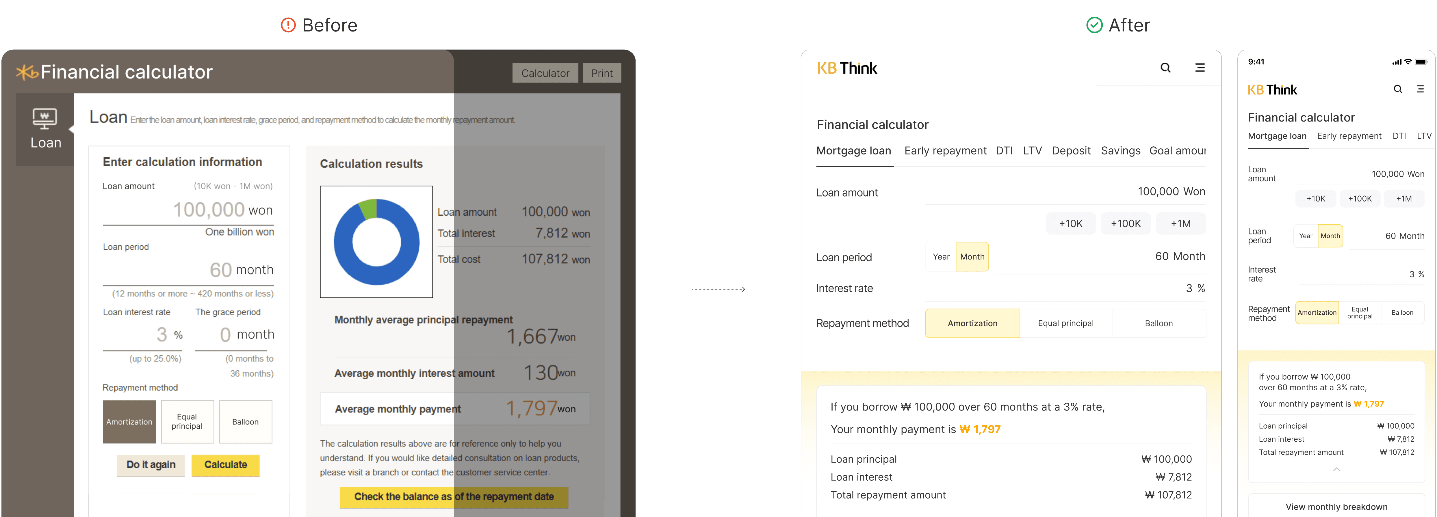 On this platform, I led the end-to-end redesign of the financial calculator, a tool commonly used for savings planning, mortgage calculations, and currency exchange.