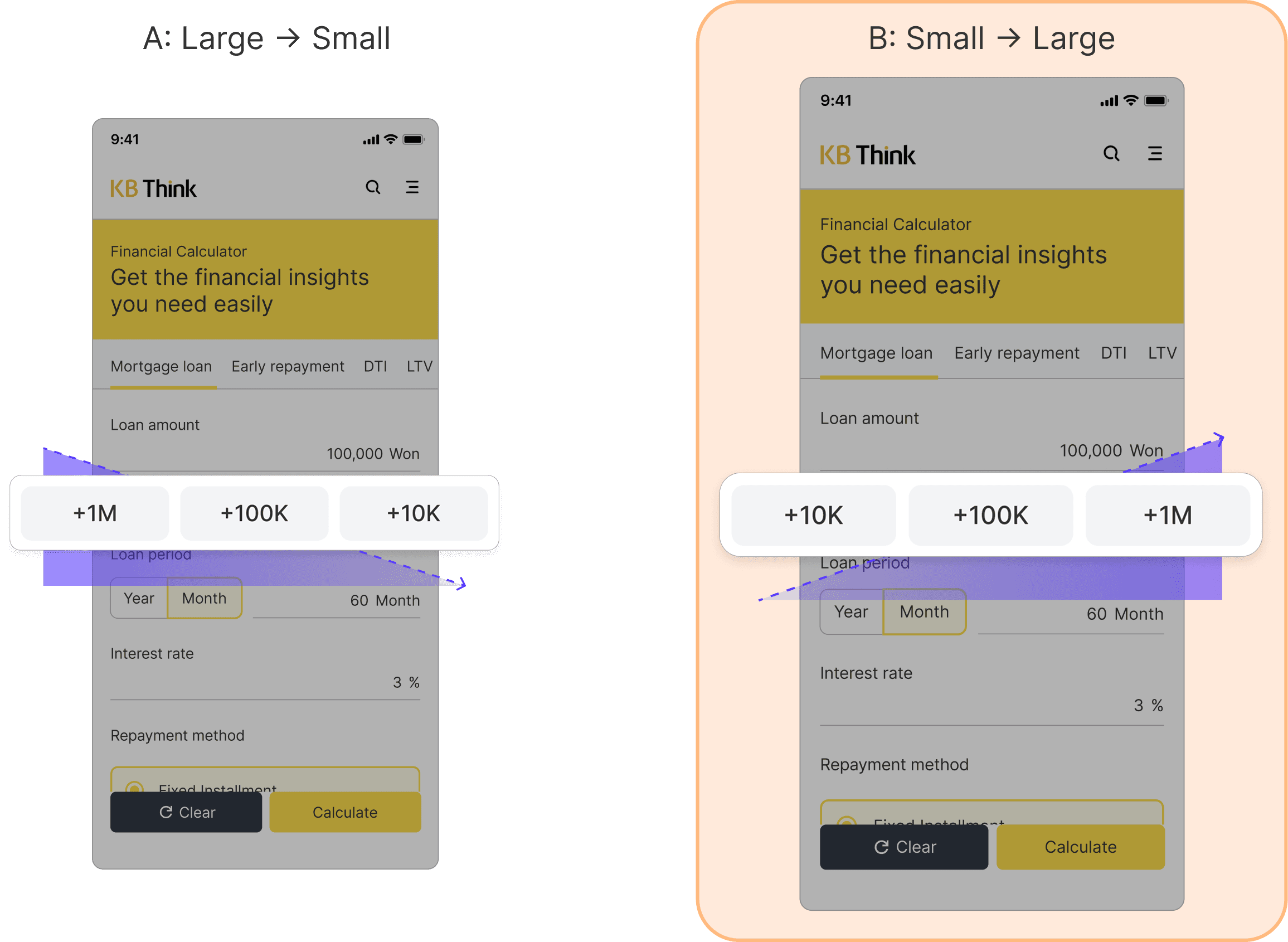 Based on this data, I formed the hypothesis that introducing number buttons could simplify number input and reduce errors. Also, This led to a key design question: should the buttons be arranged from large to small, or from small to large?